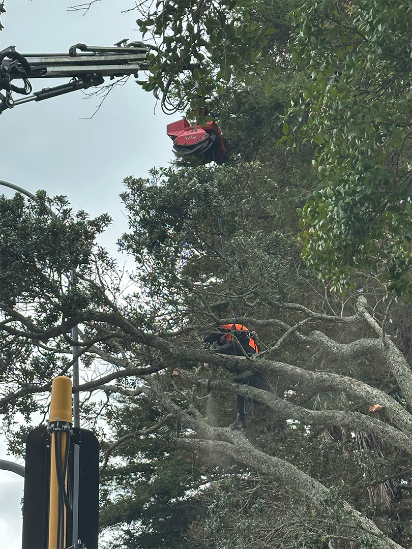 - Arborist360 own’s and have mastered the latest innovative piece of equipment on the market today a knuckle boom crane with a grapple saw attached also known as a ‘Tree-Mek’, we don’t have to climb as often to remove tree’s our remote-control tree removal system, ‘Tree-Mek’ allow us to reach over houses, powerlines and buildings for increased productivity greater precision and unparalleled safety to remove difficulty trees in confined spaces, next to powerline and other obstacles, with ease greatly reduce the risk and clean-up process to your property, resulting in less time spend on site and an overall safer, more cost effective tree removal solution for Auckland’s growing market.